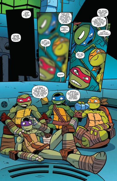 april and casey know about mikey's regression, and caesy knows about leo's! leo's brothers don't know that casey knows, though, so it's kinda complicated.> casey has become sort of a caregiver for leo when he feels too bad to go to his brothers! it all happened on accident, so it's very confusing